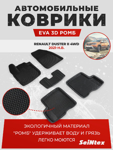 Коврики EVA 3D ромб Seintex для Renault Duster II 4wd 2021-н.в.(черные, 96307)