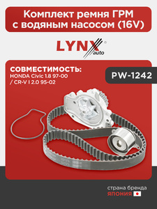 Комплект ремня ГРМ с водяным насосом (16V) LYNXauto PW-1242. Для: HONDA Хонда Civic(Цивик) 1.8 97-00 / CR-V(Сиэрви) I 2.0 95-02