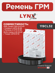 Ремень ГРМ LYNXauto 119CL32. Для: ISUZU(Исузу) Campo 2.5D 83-90 / Trooper 2.8TD 87-91, OPEL Опель Campo 2.5D-3.2TD 91> / Frontera A 2.8TD 95-98 / Monterey A 3.1TD 91-98