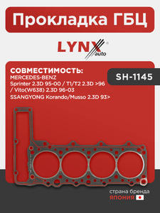 Прокладка ГБЦ LYNXauto SH-1145. Для: MERCEDES Мерседес-BENZ Sprinter(Спринтер) 2.3D 95-00 / T1/T2 2.3D >96 / Vito(Вито)(W638) 2.3D 96-03, SSANGYONG Ссангйонг Korando/Musso 2.3D 93>