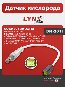 Датчик кислорода LYNXauto DM-2031. Для: Infiniti, Инфинити, QX56 12-14, Nissan, Ниссан, 1.4-5.6 Altima 07-18 / Cube 05-08 / Maxima 09-14 / Micra(Микра) 05-15 / Murano(Мурано) 08-14.