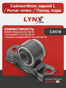 Сайлентблок задний L / Рычаг нижн. / Перед. подв. LYNXauto C8519. Для: NISSAN НИССАН Primera(P11) 1.6-2.0D 96-01 / Primera TRAV(РАВ)eller(WP11) 1.6-2.0D 96-02 / Bluebird(U14) 96-01