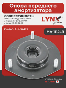 Опора переднего амортизатора LYNXauto MA-1112LR. Для: Toyota, Тойота, Camry(Камри)(V40) 2.4 06> / Highlander(Хайлендер) 2.7-3.5 07-14 / Venza 2.7-3.5 08-16. Резьба 1- 3-MM10x1,25.