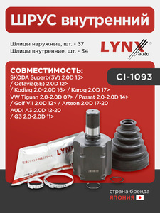 ШРУС внутренний LYNXauto CI-1093. Для: Audi, Ауди A3 2.0D 12-20 / Q3 2.0-2.0D 11>, Skoda, Шкода, Superb(Суперб)(3V) 2.0D 15> / Octavia(Октавия)(5E) 2.0D 12> / Kodiaq(Кадьяк) 2.0-2.0D 16>.