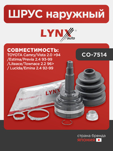 ШРУС наружный LYNXauto CO-7514. Для: TOYOTA Тойота Camry(Камри)/Vista 2.0 >94/Estima/Previa 2.4 93-99/Liteace/Townace 2.2 96> / Lucida/Emina 2.4 92-99