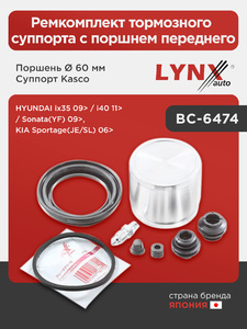 Ремкомплект тормозного суппорта с поршнем переднего (поршень Ø 60 mm, суппорт Kasco) LYNXauto BC-6474. Для: Hyundai, Хендай ix35 09> / i40 11> / Sonata(Соната)(YF) 09>, Kia, Киа, Sportage(Спортаж).