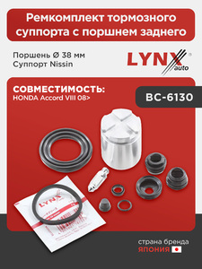 Ремкомплект тормозного суппорта с поршнем заднего (поршень Ø 38 mm, суппорт Nissin) LYNXauto BC-6130. Для: Honda, Хонда, Accord(Акорд) VIII 08>.