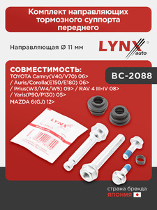Комплект направляющих тормозного суппорта переднего (направляющая Ø 11 mm) LYNXauto BC-2088. Для: Mazda, Мазда, 6(GJ) 12>, Toyota, Тойота, Camry(Камри)(V40/V70) 06> / Auris/Corolla(Корола).