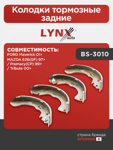 Колодки тормозные задние LYNXauto BS-3010. Для: MAZDA(Мазда) 626(GF) 97> / Premacy(CP) 99> / Tribute 00>, FORD ФОРД Maverick 01>