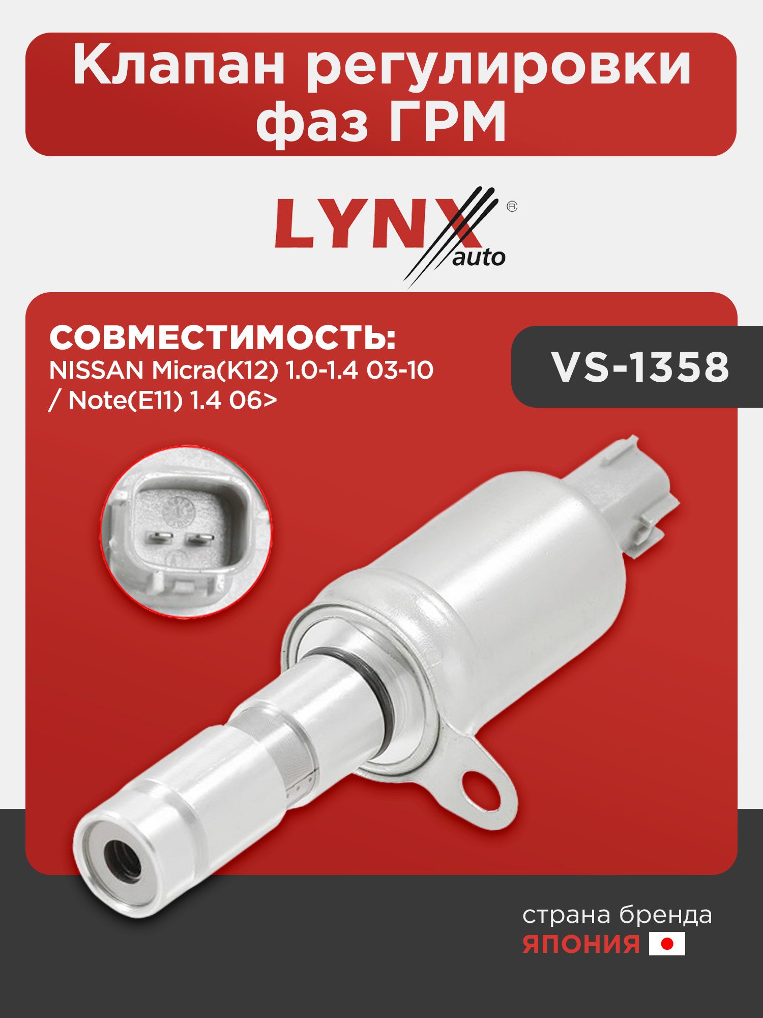 Клапан регулировки фаз ГРМ LYNXauto VS-1358. Для: NISSAN Micra(K12) 1.0-1.4 03-10 / Note(E11) 1.4 06>