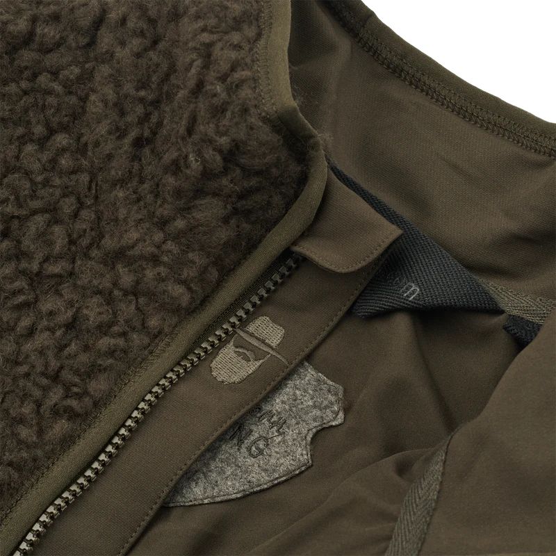 Кофта из флиса из шерстяного материала, который сохраняет тепло и пропускает воздух. Для водоотталкивающих свойств его покрыли пропиткой RUDOLF BIONIC FINISH® ECO. Задняя часть кофты длиннее, чтобы обеспечивать лучшую теплоизоляцию.