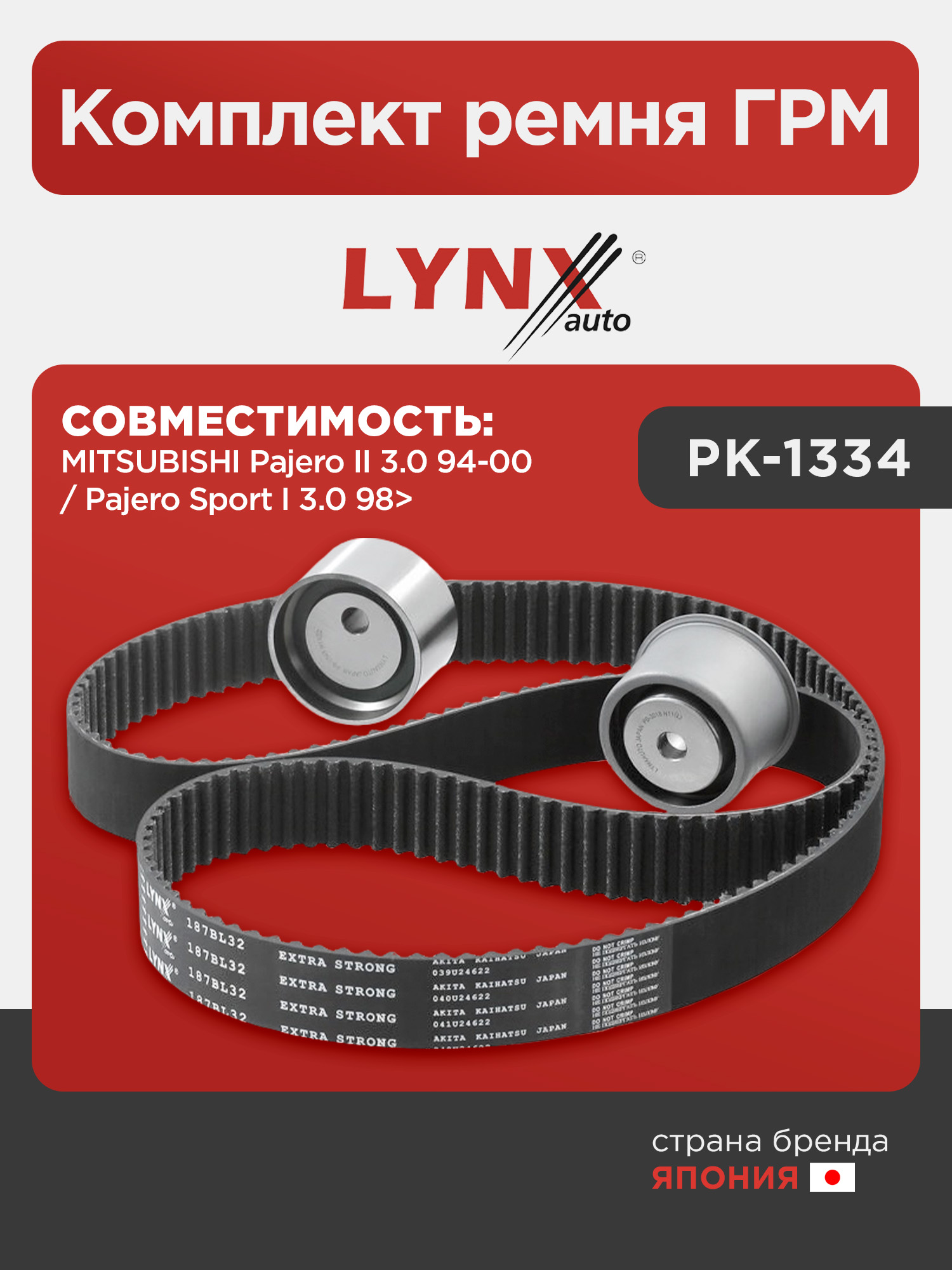 Комплект ремня ГРМ LYNXauto PK-1334. Для: MITSUBISHI Митсубиси Pajero(Паджеро) II 3.0 94-00 / Pajero Sport(ПаджероСпорт) I 3.0 98>