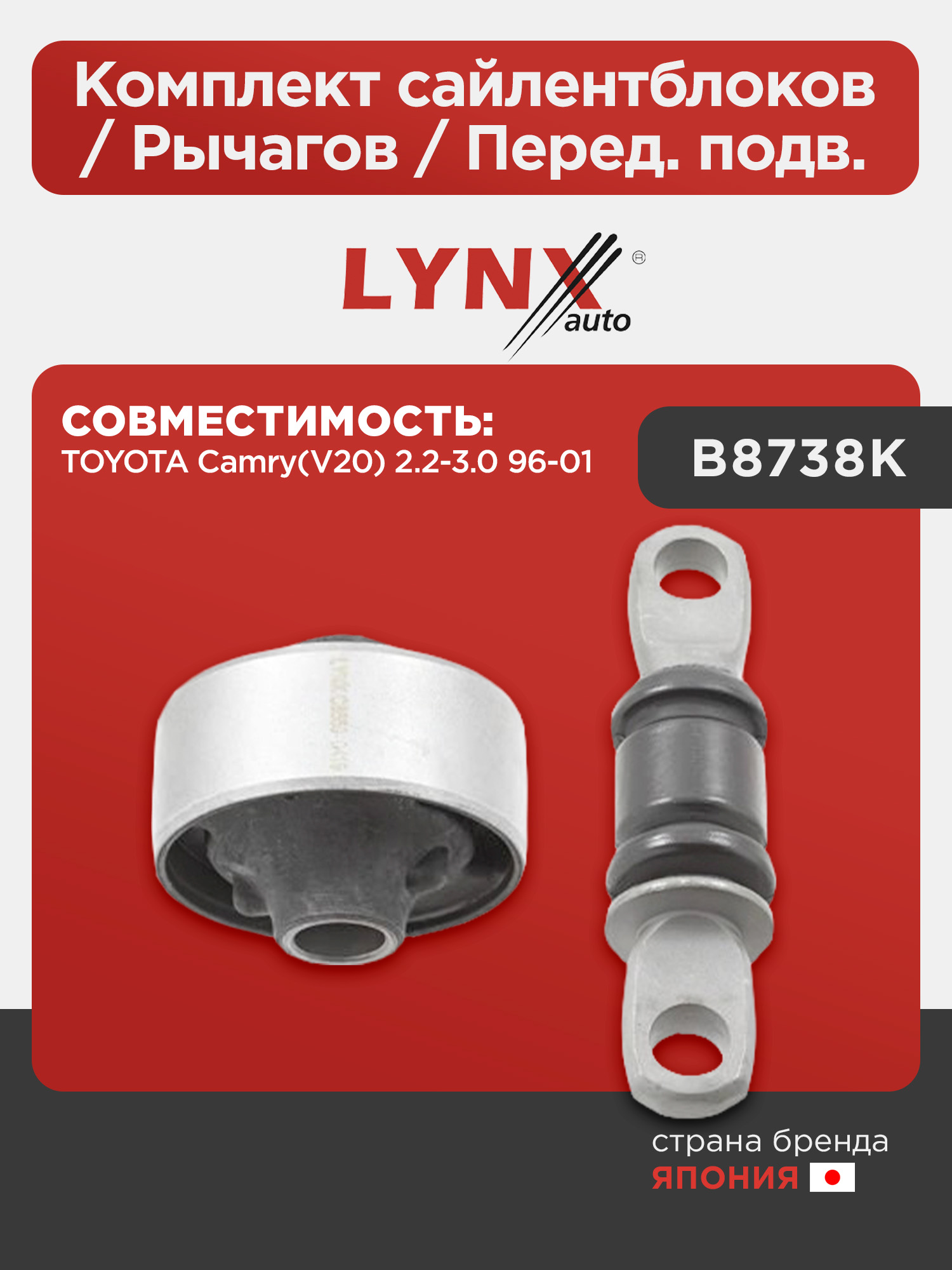 Комплект сайлентблоков / Рычагов / Перед. подв. LYNXauto B8738K. Для: TOYOTA Тойота Camry(Камри)(V20) 2.2-3.0 96-01