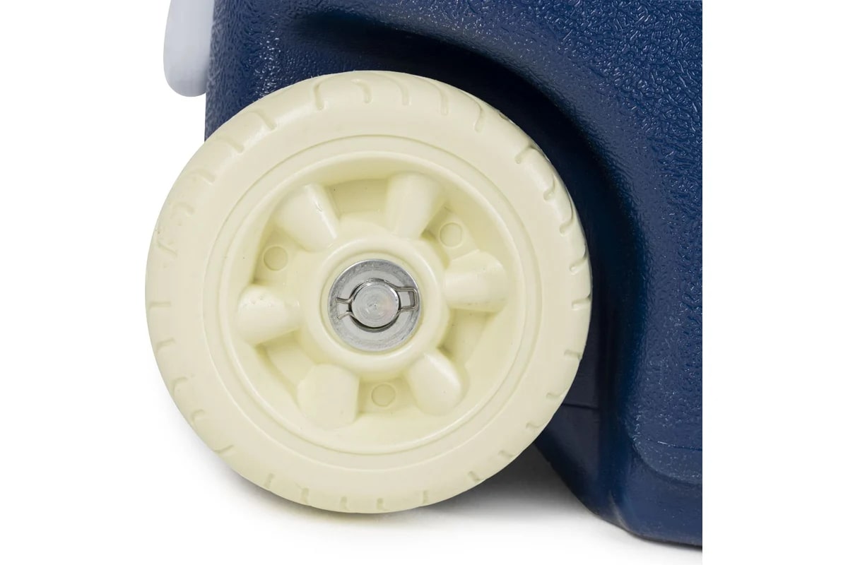 С одной стороны корпуса есть колеса, которые облегчают транспортировку. Для переноски есть боковые ручки, его смогут нести сразу два человека.