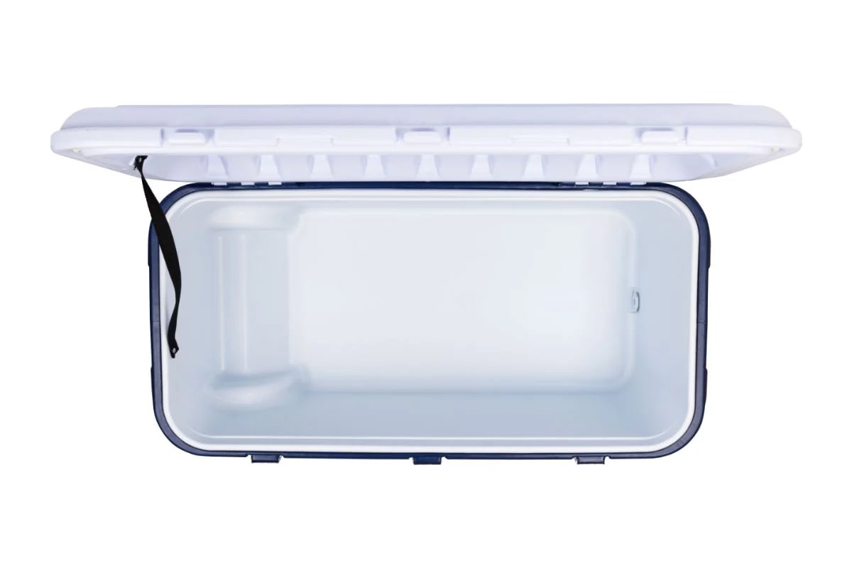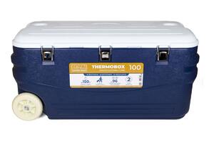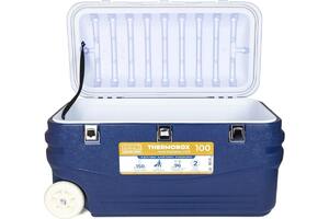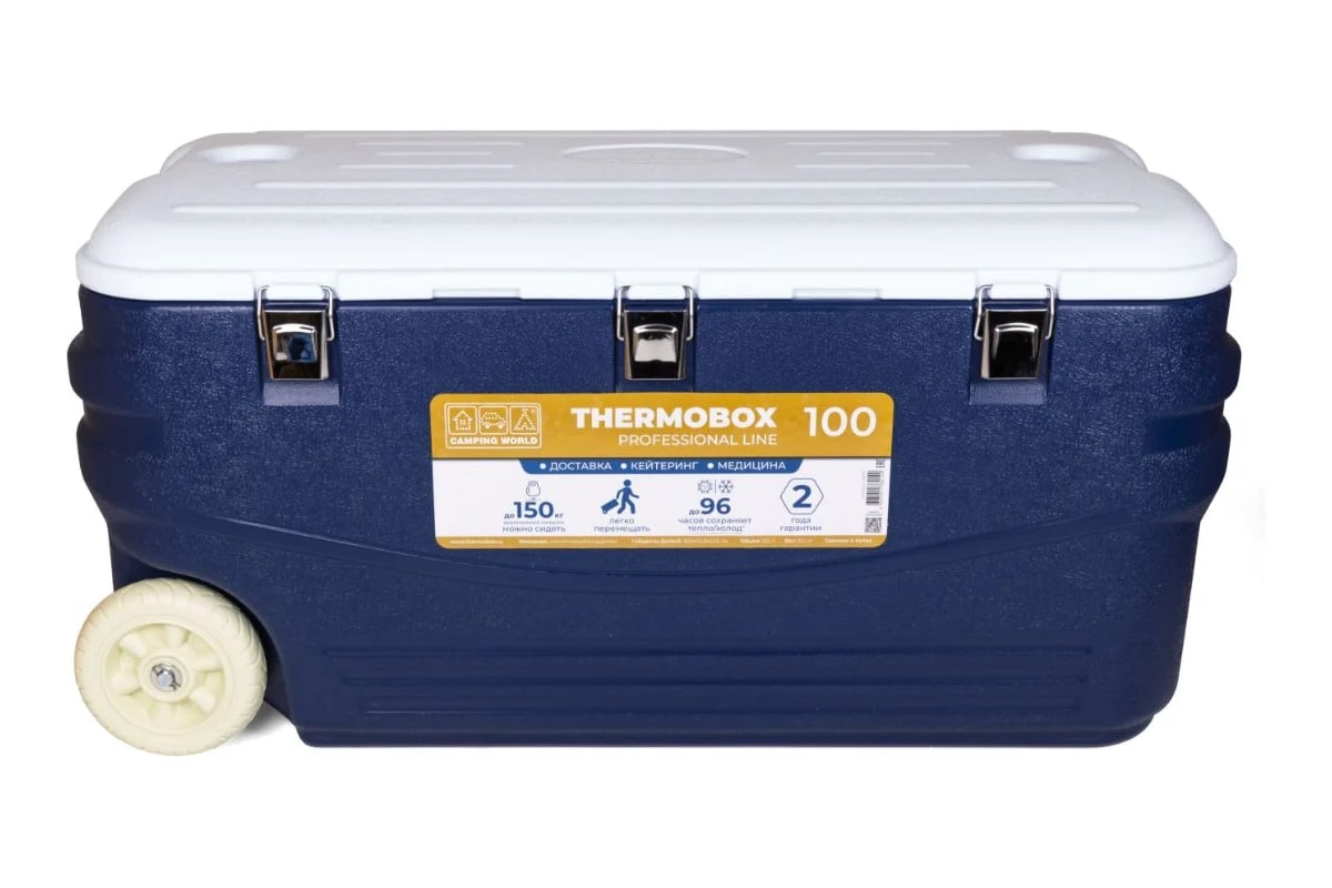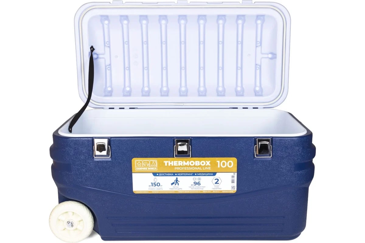 Термоконтейнер отличает прочный ударопрочный корпус, надежная и жесткая конструкция. Он выдерживает до 150 кг вертикальной нагрузки. На крышке можно сидеть взрослому человеку, сверху можно ставить другие термобоксы.