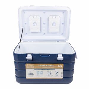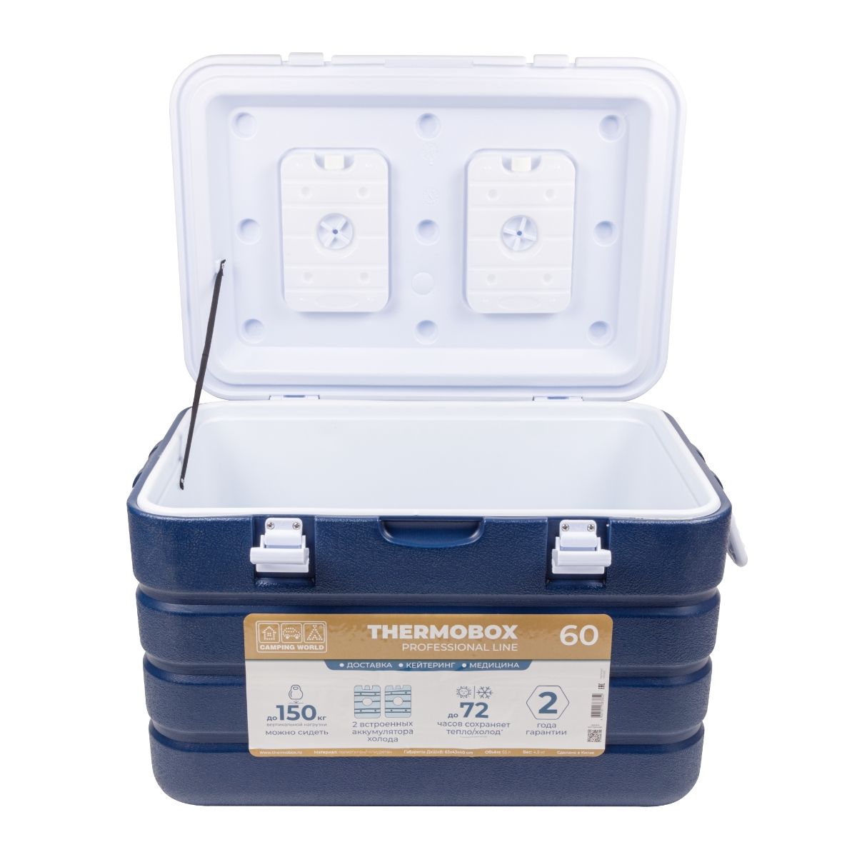 Термоконтейнер отличает прочный ударопрочный корпус, надежная и жесткая конструкция. Он выдерживает до 150 кг вертикальной нагрузки. На крышке можно сидеть взрослому человеку, сверху можно ставить другие термобоксы.