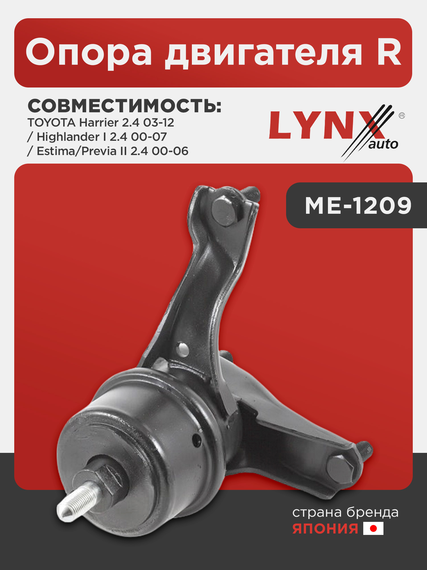 Опора двигателя R LYNXauto ME-1209. Для: TOYOTA Тойота Harrier(Харриер) 2.4 03-12 / Highlander(Хайлендер) I 2.4 00-07 / Estima/Previa II 2.4 00-06