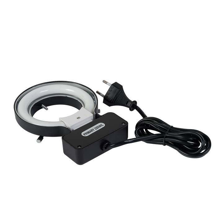 При выполнении точной работы или контроле качества изделий важно использовать высокоточные оптические приборы с правильно настроенным освещением. Обычная подсветка отраженного света создает тени, из-за которых можно не увидеть дефект пайки или самого материала. Бестеневое освещение на стереоскопическом микроскопе поможет создать этот кольцевой осветитель – МБС 10 или любая другая модель серий МС и МБС с ним совместимы. Он устанавливается прямо на объектив и фиксируется тремя винтами. Для работы осветителя требуется сеть переменного тока.