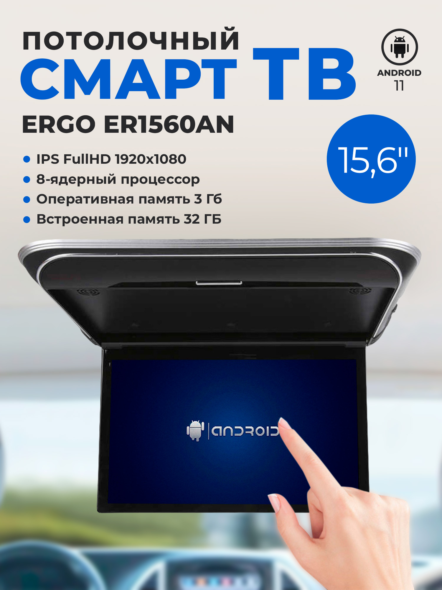 Потолочный Смарт ТВ 15.6" Ergo ER1560AN (1920x1080, android), черный купить оптом от производителя со склада в магазине Первый Туристический