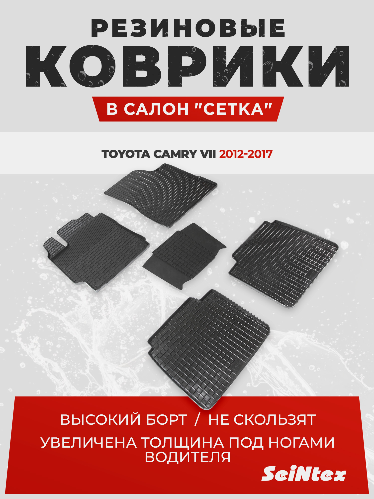 Резиновые коврики Сетка от Seintex имеют простой и эффектный рисунок, он хорошо смотрится и удачно подходит к салону любого автомобиля. Рисунок легко моется, предотвращает перетекание воды при движении автомобиля, хорошо удерживает в себе грязь при вынимании из салона.