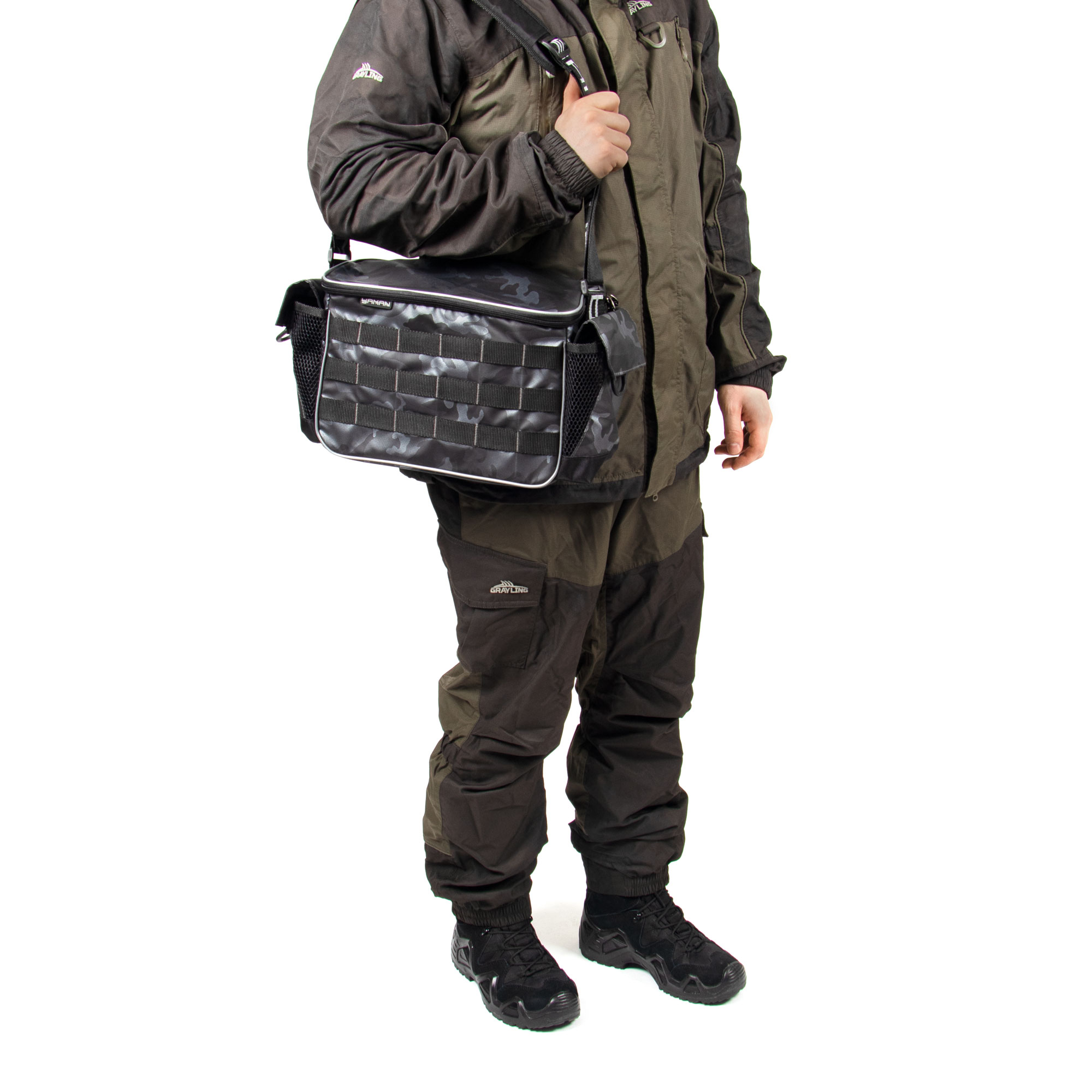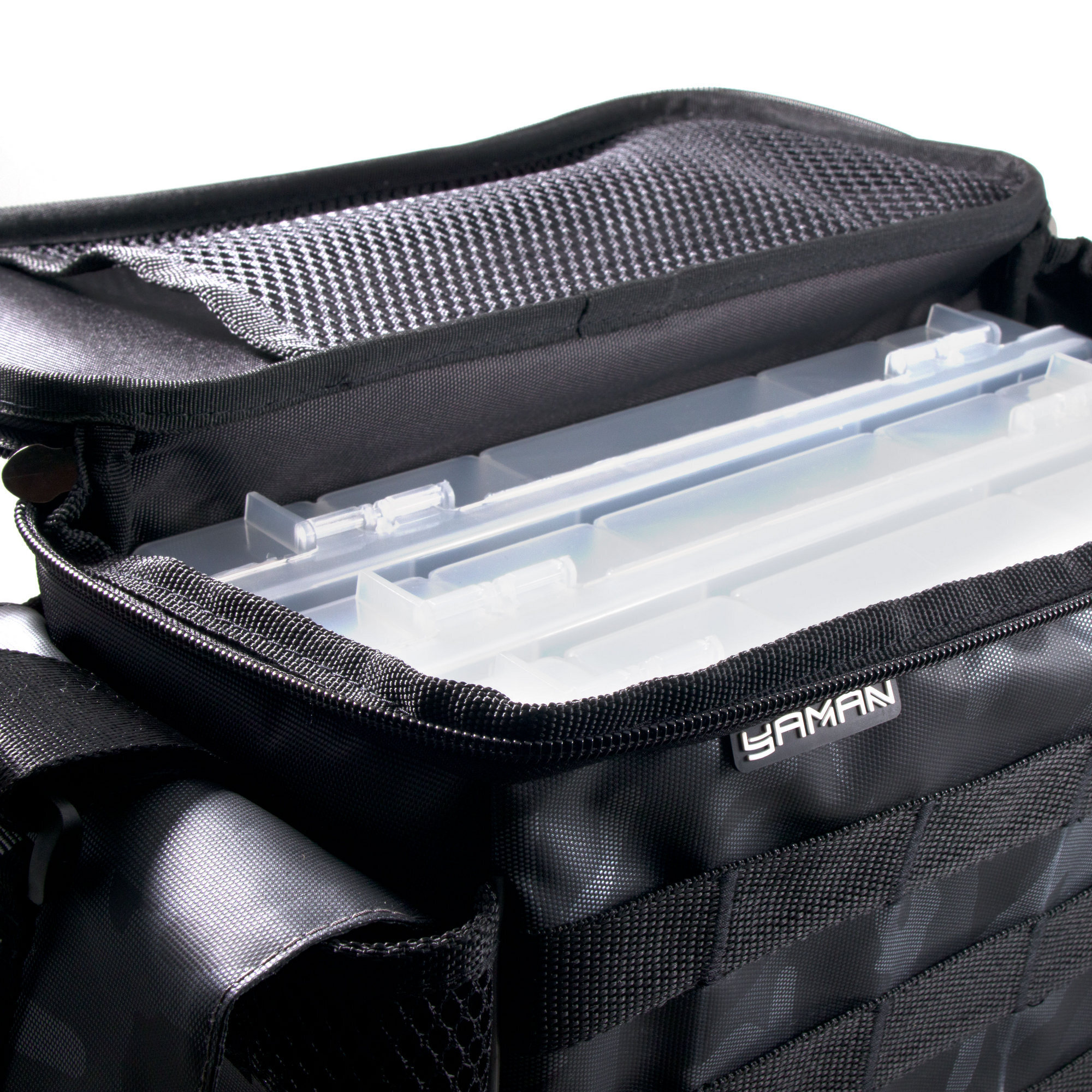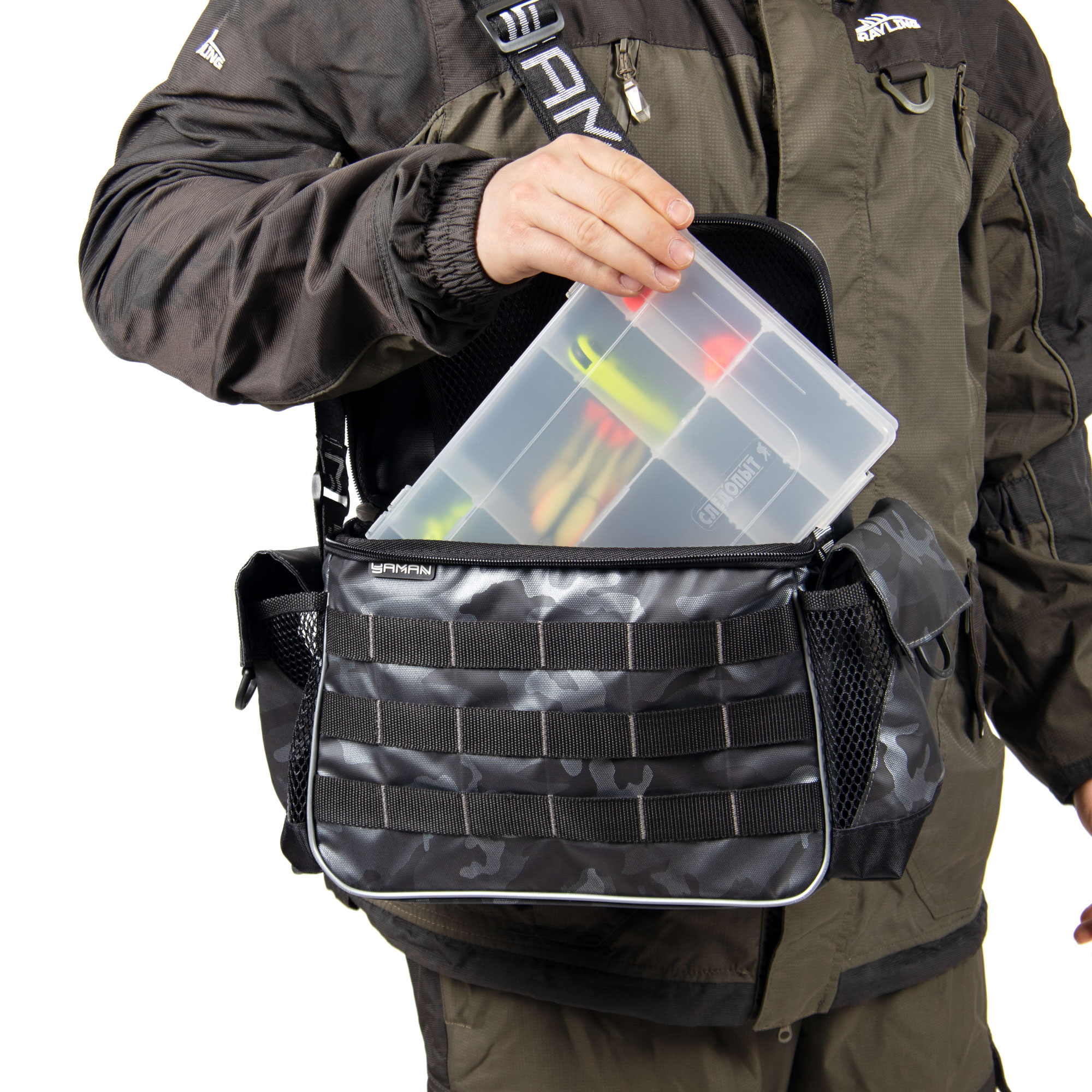 Сумка рыболовная «Yaman Base Lure Bag» - сумка-модуль для приманок, спроектированная с учетом использования для ловли с лодки. Данная модель имеет четыре площади для крепления навесных модулей: две боковые, фронтальную и на крышке сумки. Конструкция включает в себя D-образные полукольца для крепления различных инструментов, а также ручки для переноски и съемный плечевой ремень. Возможно использовать и для работы с техническими инструментарием. Комплектуется тремя стиковыми коробками «Следопыт LUNO-20». ХАРАКТЕРИСТИКИ: • Размеры – 380х260х250 мм • Ткань верха – Oxford 600D PVC • Ткань подклада – Oxford 210D • Сетка 3-слойная полиэстер • Уплотнитель – вспененный полиэтилен • Наполнение – 3 коробки LUNO 20.