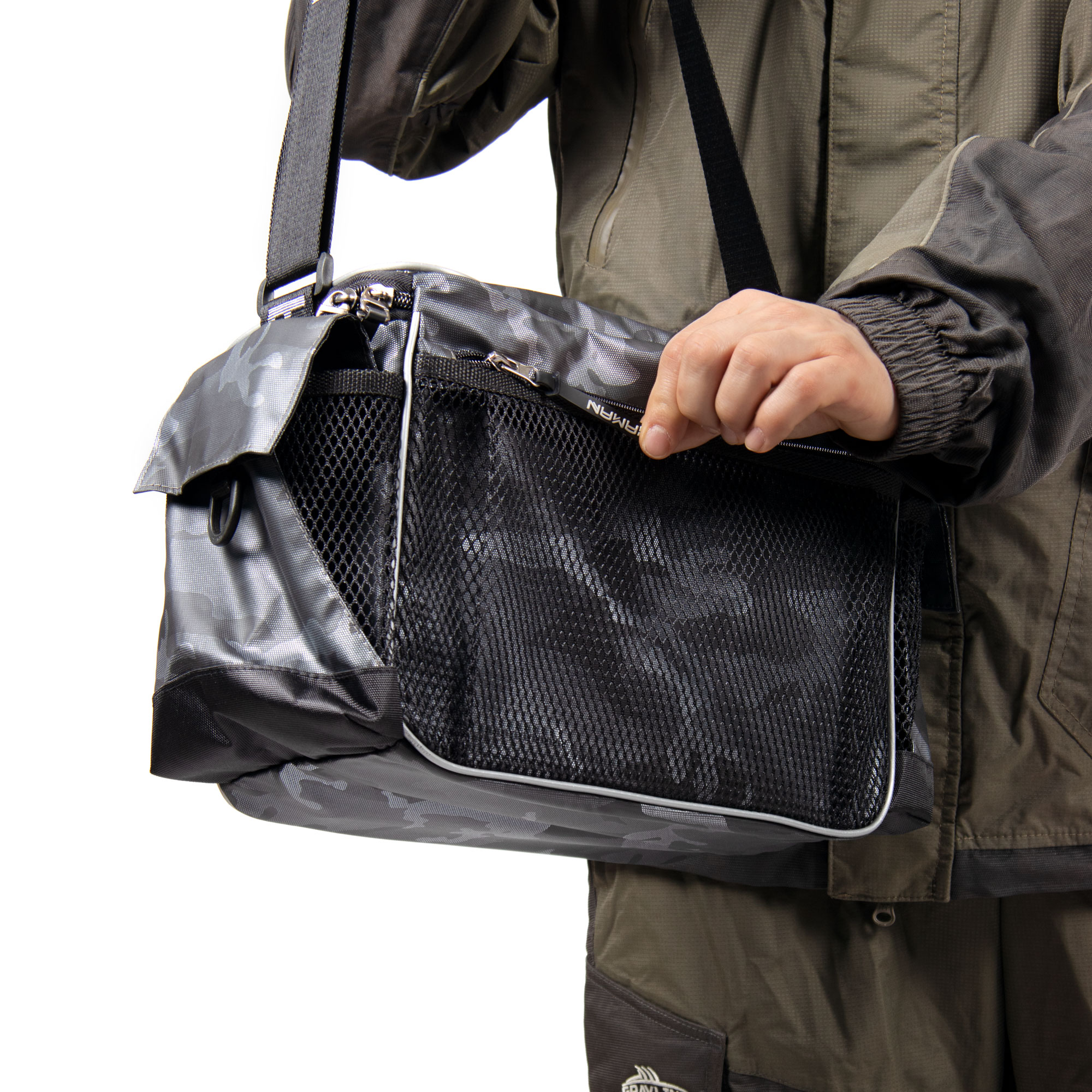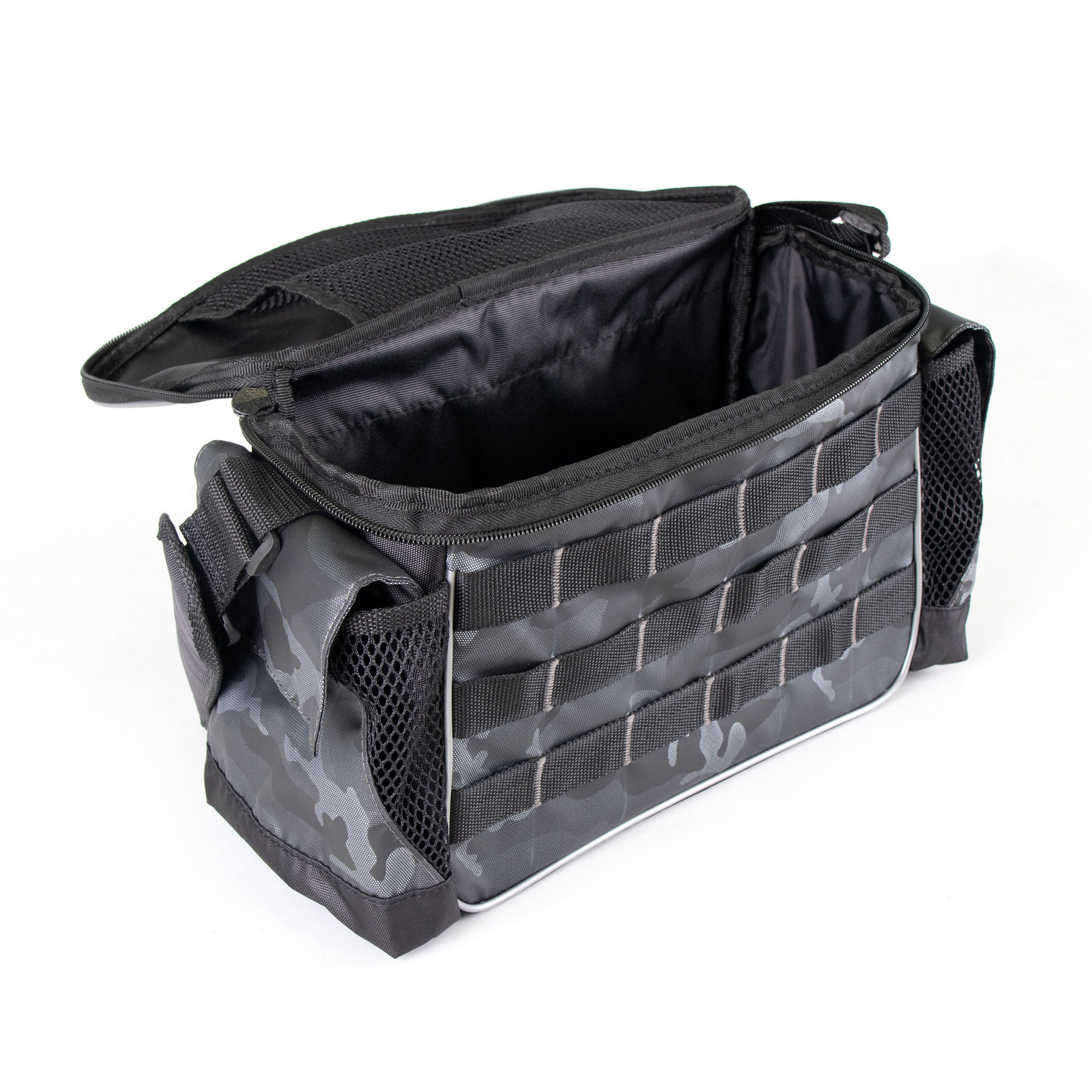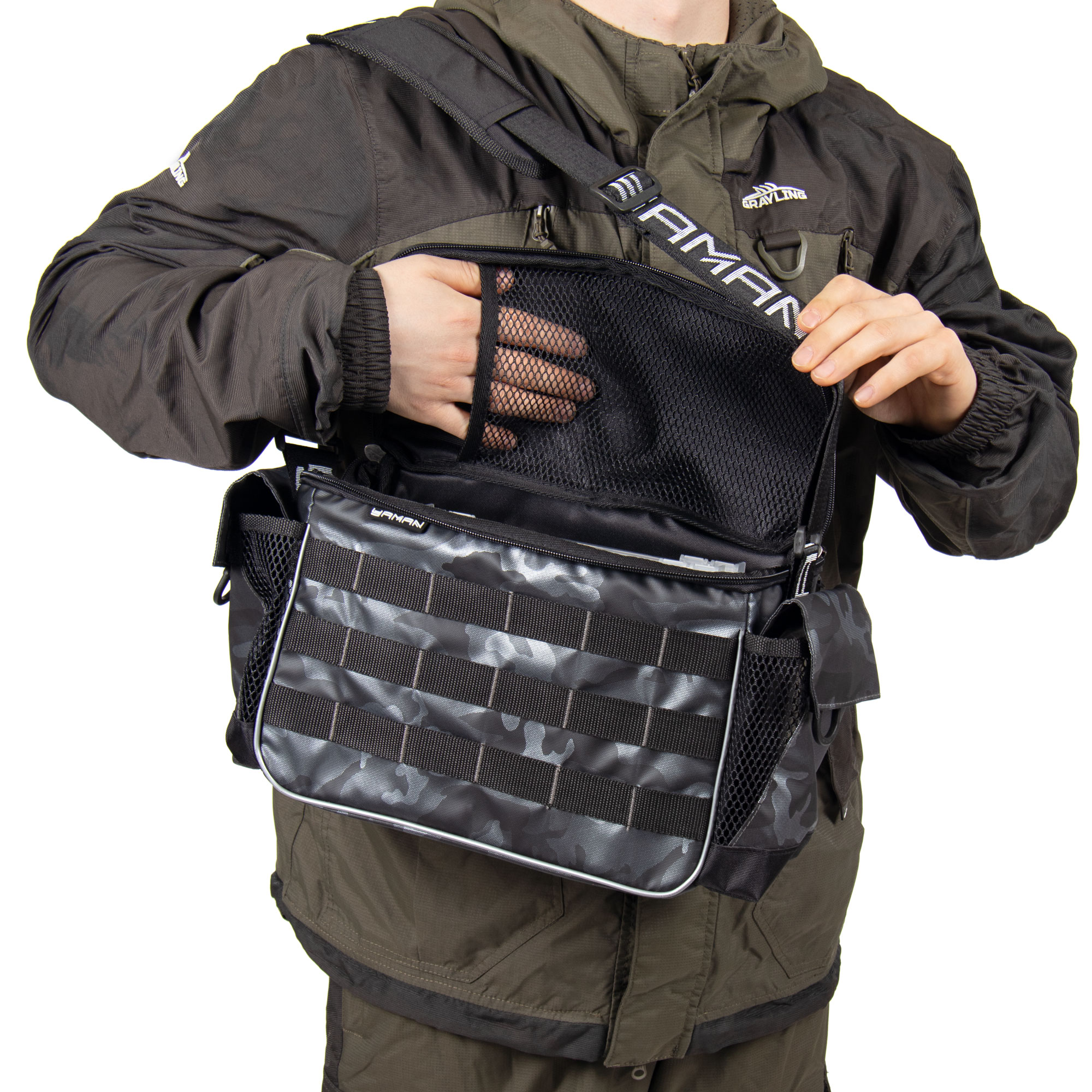 Сумка рыболовная «Yaman Base Lure Bag» - сумка-модуль для приманок, спроектированная с учетом использования для ловли с лодки. Данная модель имеет четыре площади для крепления навесных модулей: две боковые, фронтальную и на крышке сумки. Конструкция включает в себя D-образные полукольца для крепления различных инструментов, а также ручки для переноски и съемный плечевой ремень. Возможно использовать и для работы с техническими инструментарием. Комплектуется тремя стиковыми коробками «Следопыт LUNO-20». ХАРАКТЕРИСТИКИ: • Размеры – 380х260х250 мм • Ткань верха – Oxford 600D PVC • Ткань подклада – Oxford 210D • Сетка 3-слойная полиэстер • Уплотнитель – вспененный полиэтилен • Наполнение – 3 коробки LUNO 20.