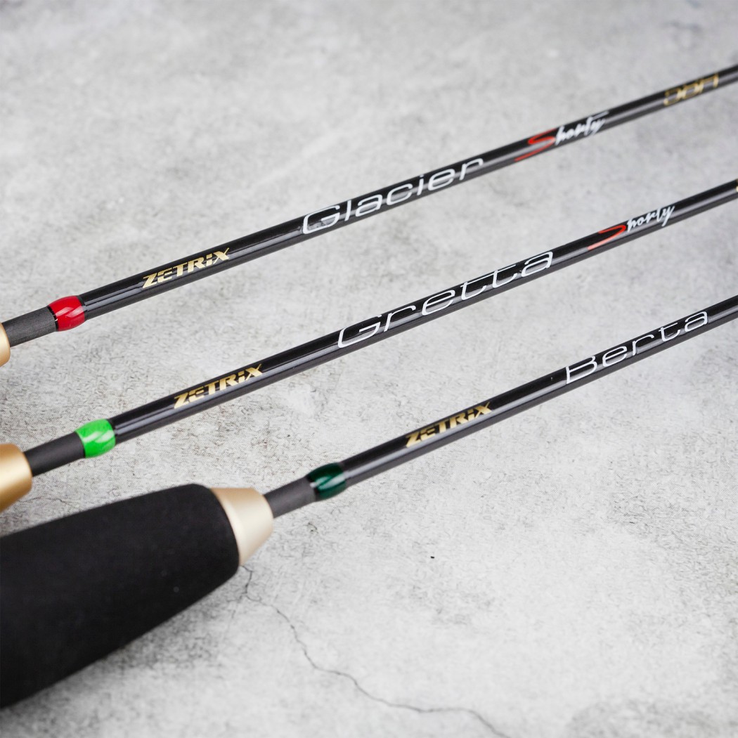 Berta — удилища для комфортной многочасовой рыбалки с катушками разных типов: современными мультипликаторами для отвесного блеснения, компактными безынерционками и классическими небольшими инерционными.